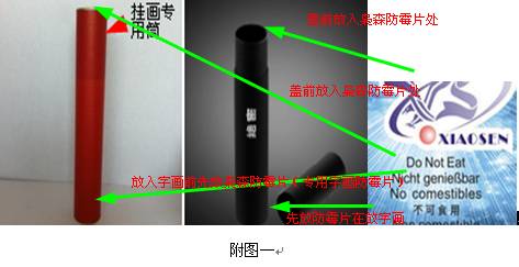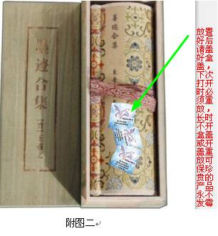 2):在字畫專用筒底部和上部同時放入梟森防霉片后蓋好盒蓋。(如附圖一和二)。