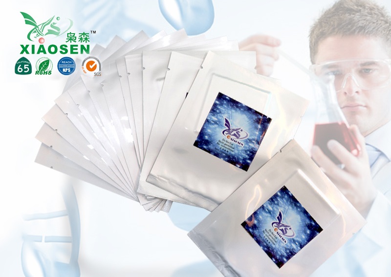 梟森第三代環保高效防霉片是梟森公司嚴格按照歐盟標準開發出的又一款新型防霉產品。其原理是將防霉精華液蘊含在防霉片的夾層之中,通過控制夾層縫隙的大小、片材面積的大小來控制氣體的釋放速度和濃度。而且,它還能隨濕度高低來控制氣體的緩釋濃度(干燥狀態下不釋放防霉氣體),可以在產品包裝箱內的濕度大于45的情況下與水蒸氣接觸引發A與B物自動發生化學反應,生成一種保護性氣體,無孔不入地與霉菌孢子充分接觸,迅速穿透微生物的細胞膜,破壞其DNA,使細菌或霉菌無法繁職,以達到商品防霉防腐的效果。所以本品既廣泛適用于皮革、人造革、紡織品、紙張、竹木材料、陶瓷、電器、文物等多個領域生產、貯存、運輸中的抗菌防霉處理,又是家庭(換季)鞋類、衣物、書籍、文物、家用電器、皮革制品等抗菌防霉的最佳選擇。